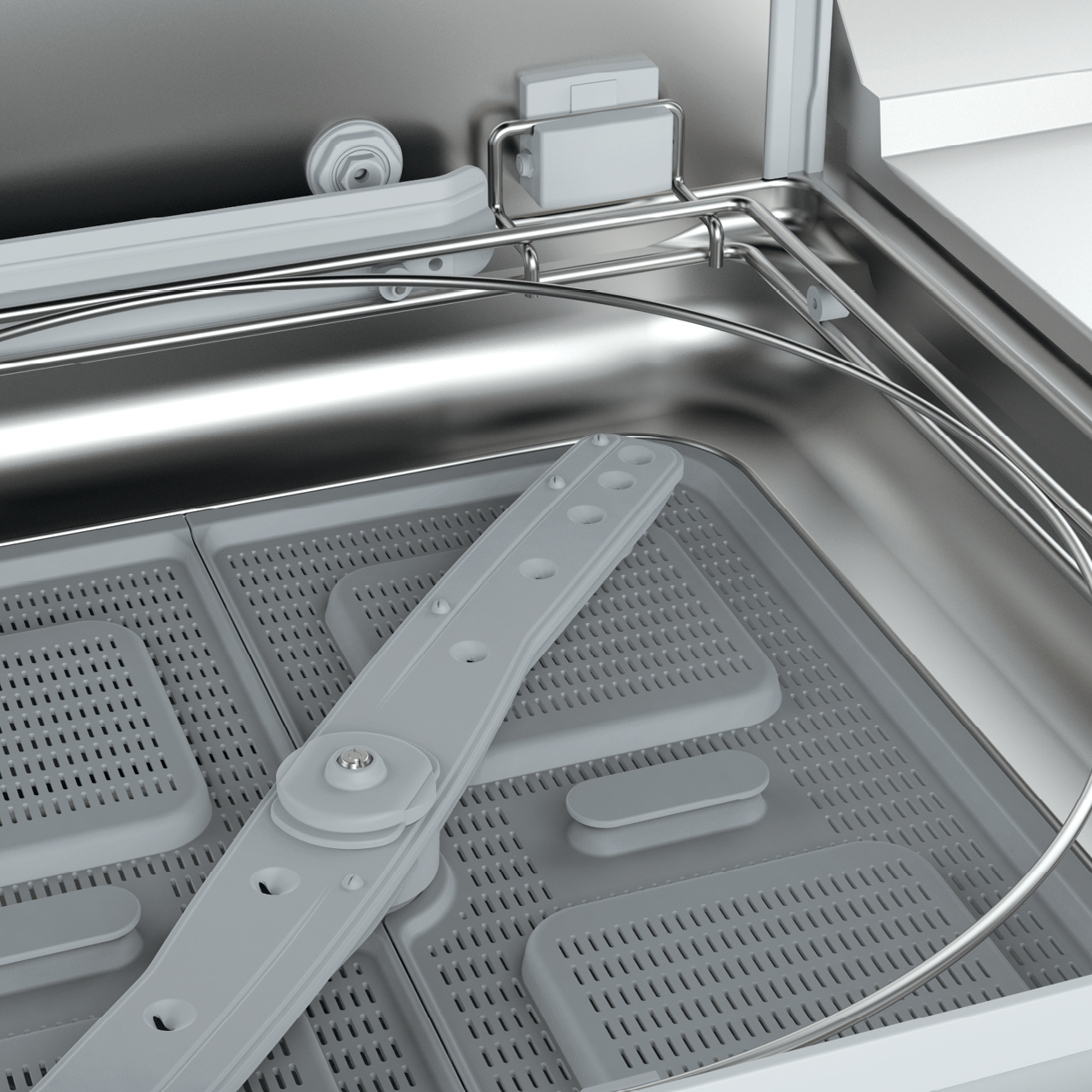 - Tiefgezogener Tank & Clip-In Spül-/Nachspülarme für schnelle, werkzeuglose Reinigung