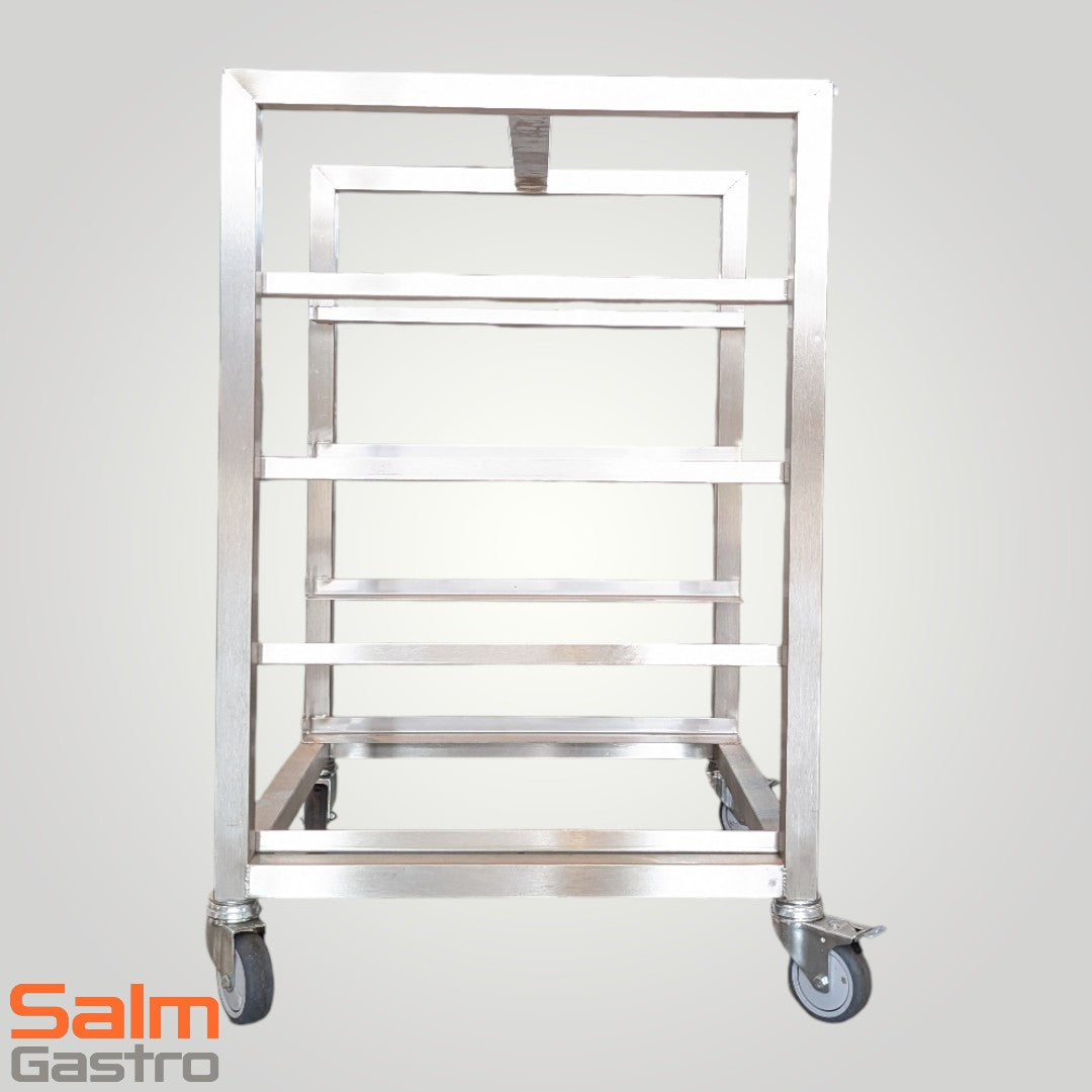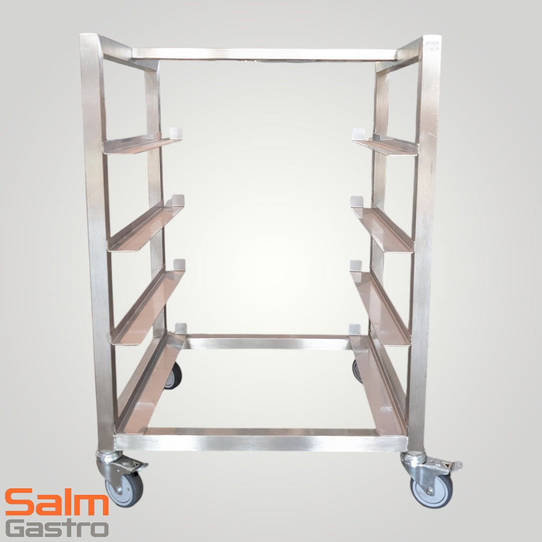 Kompakt. Stabil. Effizient. Der Edelstahl-Korbwagen für 4×500×500-mm Spülkörbe schafft strukturierte Ablagen direkt an Spülmaschine & Vorsortierung.