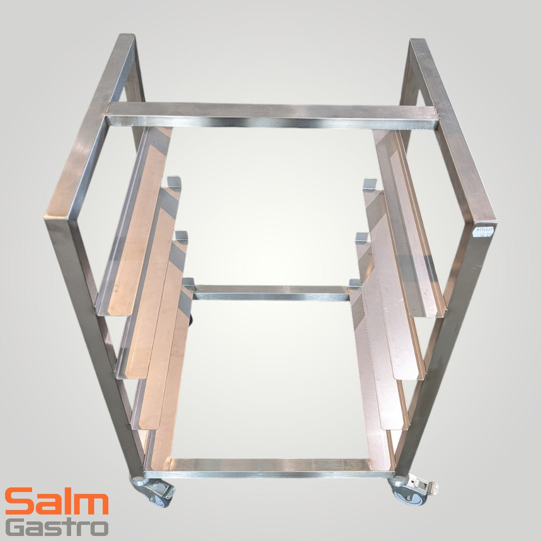 - 1× Edelstahl-Wagen für Spülkörbe 500×500 mm (B/T/H 570×520×800 mm)