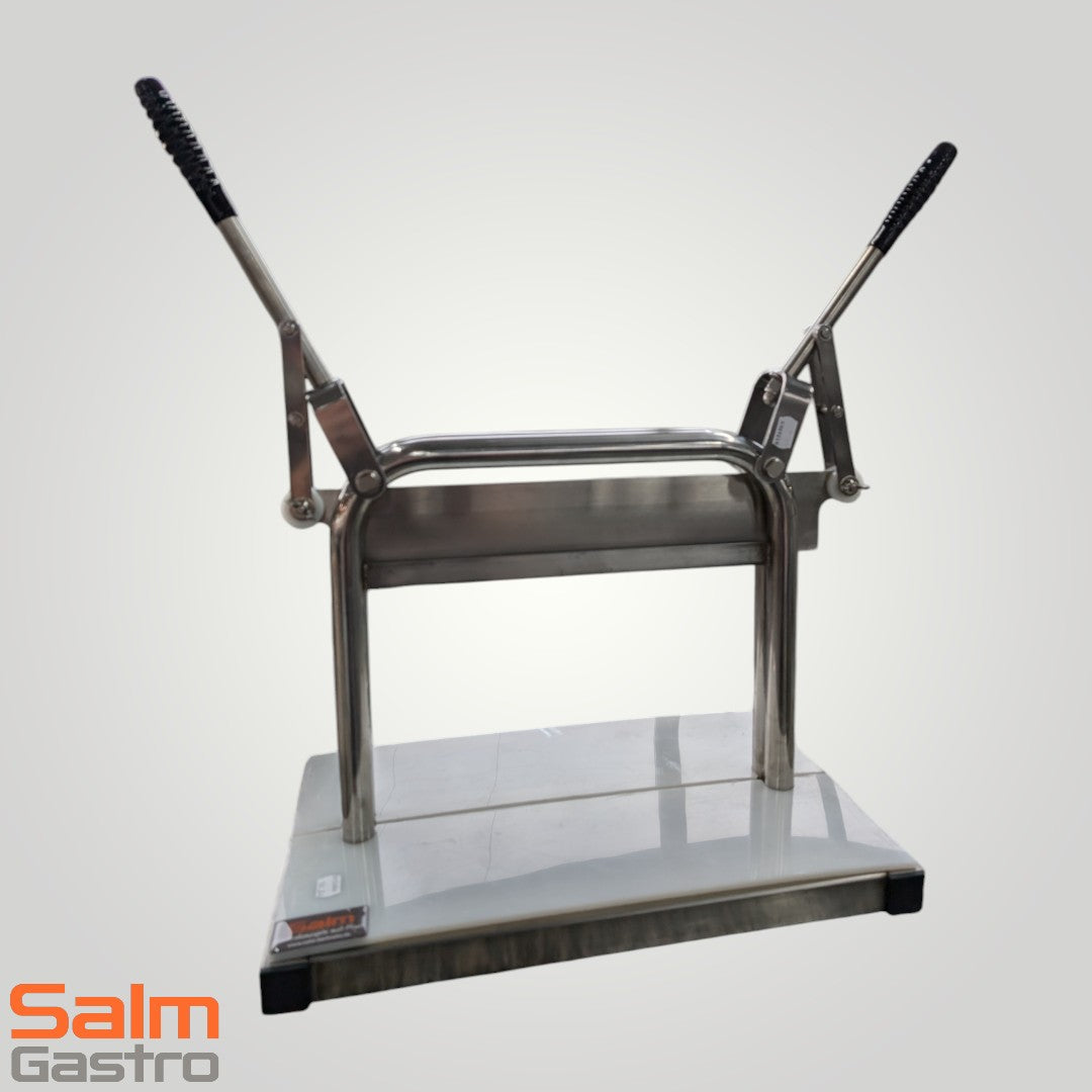 Die robuste Konstruktion aus Edelstahl und Aluminium gewährleistet Langlebigkeit und Stabilität, selbst bei häufigem Gebrauch. Dank des durchdachten Hebelmechanismus ist die Handhabung besonders einfach und erfordert nur minimalen Kraftaufwand. Dies ermöglicht ein schnelles und gleichmäßiges Schneiden, wodurch die Arbeitsabläufe in der Küche optimiert werden.