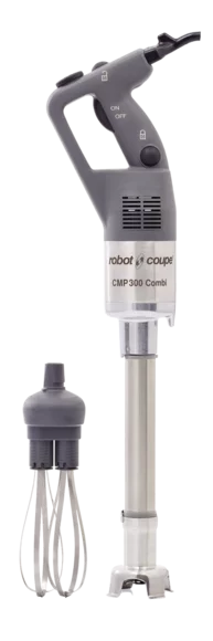 Besonders hervorzuheben ist die vollständig zerlegbare Arbeitsgruppe des CMP 300 Combi. Messer, Mischkopf, Stab und Rührbesen sind aus Edelstahl gefertigt und können zu Reinigungszwecken auseinander genommen werden – ein exklusives Patent von Robot Coupe, das auf maximale Hygiene ausgelegt ist. In Kombination mit dem dreistufigen Dichtungssystem am Stab wird das Eindringen von Flüssigkeit in den Antriebsbereich minimiert und die Lebensdauer des Geräts deutlich erhöht.