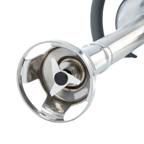Die feste Drehzahl von 9.500 U/min sorgt für ein homogenes Ergebnis und wird elektronisch konstant gehalten, sodass die Leistung nicht einbricht, wenn sich Konsistenz oder Füllmenge ändern. Der 350 mm lange Edelstahlstab erreicht mühelos den Boden tiefer Töpfe oder Kessel, während die gesamte Einheit dank der kompakten Gesamtlänge von etwa 763 mm gut zu handhaben bleibt. So lassen sich sowohl kleinere Ansätze als auch größere Chargen zügig und zuverlässig verarbeiten.